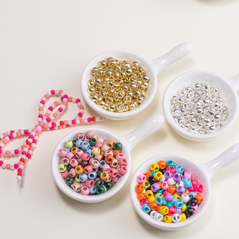 ลูกปัดสีที่มีรูวัสดุโบว์อบสีกระเป๋า DIY ห่วงโซ่โทรศัพท์พวงกุญแจเครื่องประดับทำลูกปัดหลวม